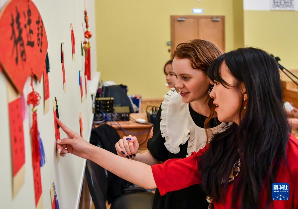 2月3日,學生在俄羅斯莫斯科國立人文大學孔子學院舉行的慶新春晚會上猜謎語。