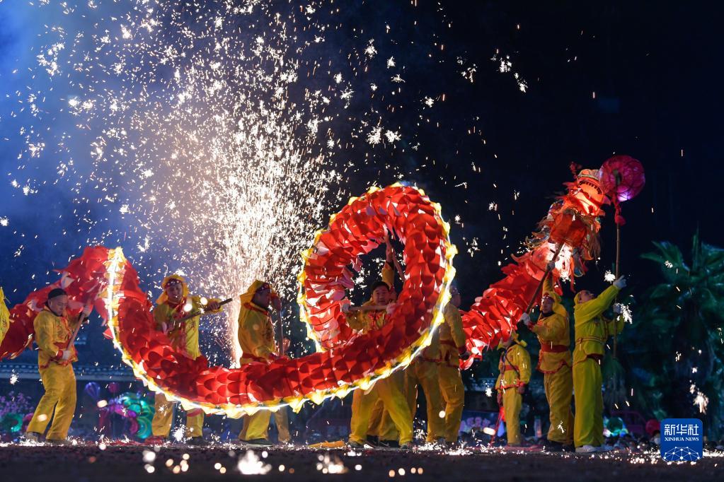苗族“舞龍噓花”是當地人用土火藥和楠竹等制成噓花筒向舞動的彩龍噴射所形成的絢麗景象。2021年,苗族“舞龍噓花”習俗入選國家級非物質文化遺產名錄。