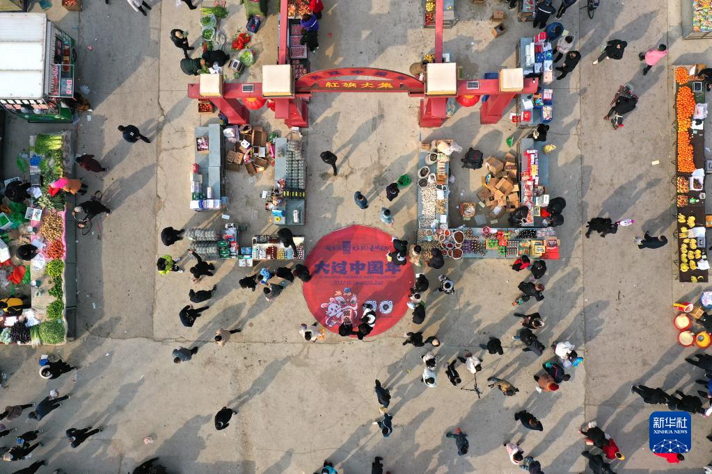 2月5日,市民和游客在有著300余年歷史的遼寧省營口紅旗大集上逛大集(無人機(jī)照片)。