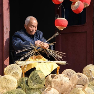 今年82歲的王學(xué)坤自幼跟隨父輩學(xué)編燈籠。制作一個小巧的“火葫蘆”燈籠要14道流程,工藝繁復(fù),費時費力,但王學(xué)坤做起來得心應(yīng)手。2007年,他所掌握的“竹篾子燈籠編織技藝”被列入陜西省第一批非物質(zhì)文化遺產(chǎn)名錄。
