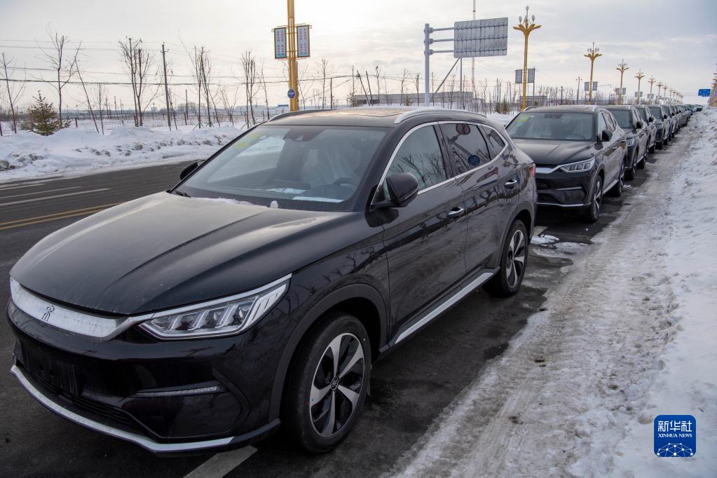 這是在巴克圖口岸拍攝的等候出口的汽車(2月4日攝)。