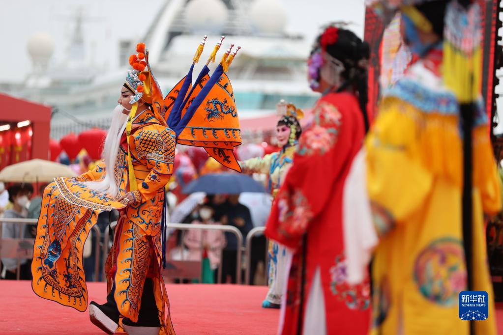 2月5日,在福建省廈門市湖里區舉行的民俗文化節上,演員在表演京劇。
