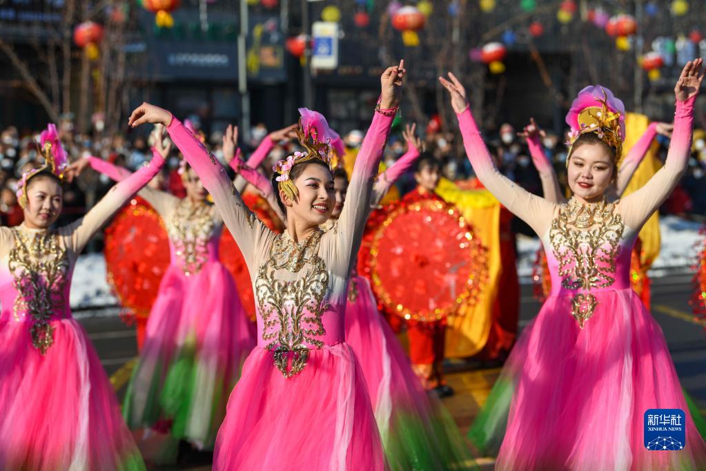 2月5日,新疆塔城地區額敏縣群眾在表演社火。