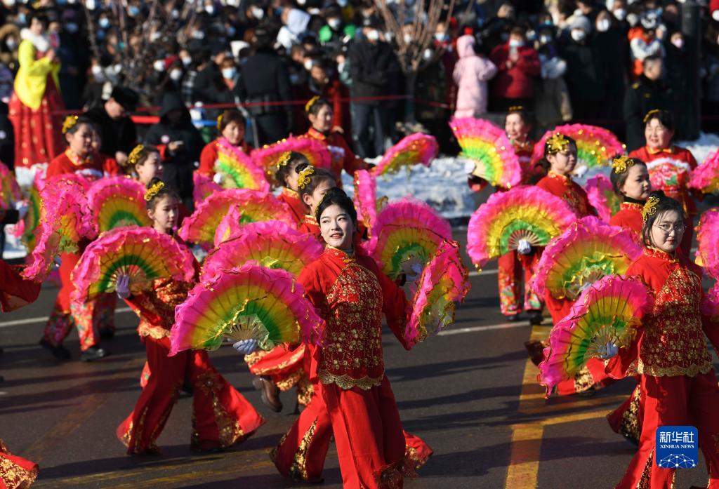 2月5日,新疆塔城地區額敏縣群眾在表演社火。