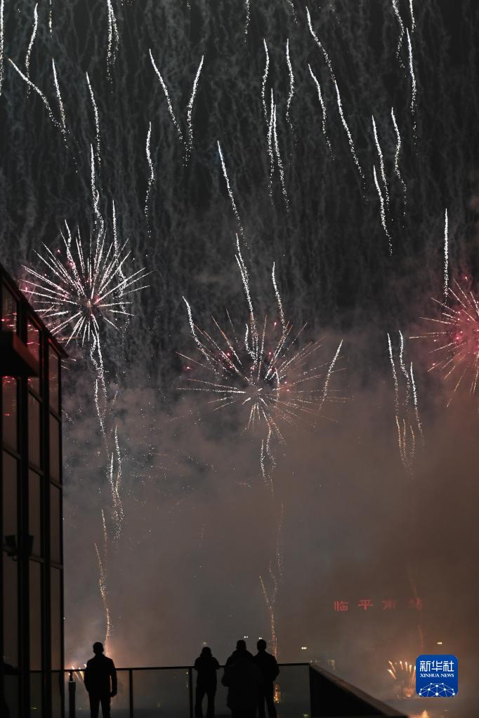 2月5日,市民在杭州市臨平區東湖公園觀看“迎亞運、慶元宵”煙花秀。