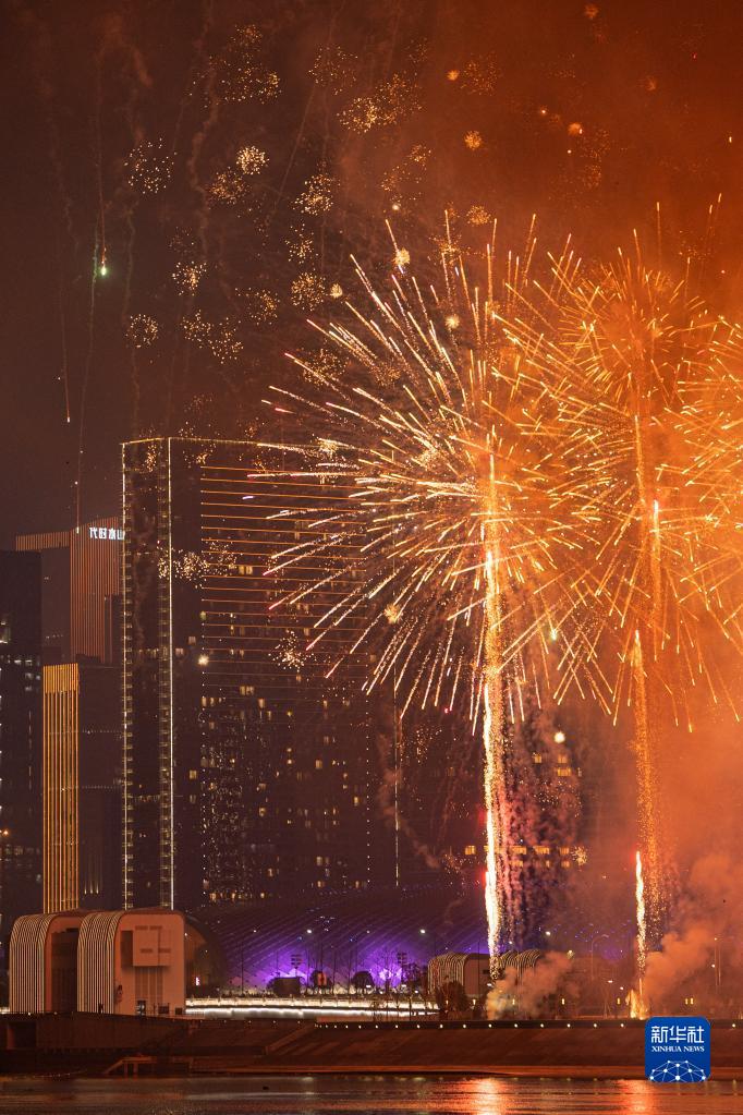 當晚,“迎亞運、慶元宵”煙花燈光秀在浙江杭州舉行。