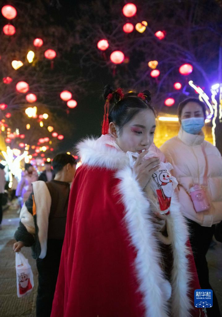 當日是農歷正月十五元宵節,在河南省??h古城里,古色古香的建筑配合璀璨燈光,吸引眾多游客沉醉其中,度過難忘的元宵夜。