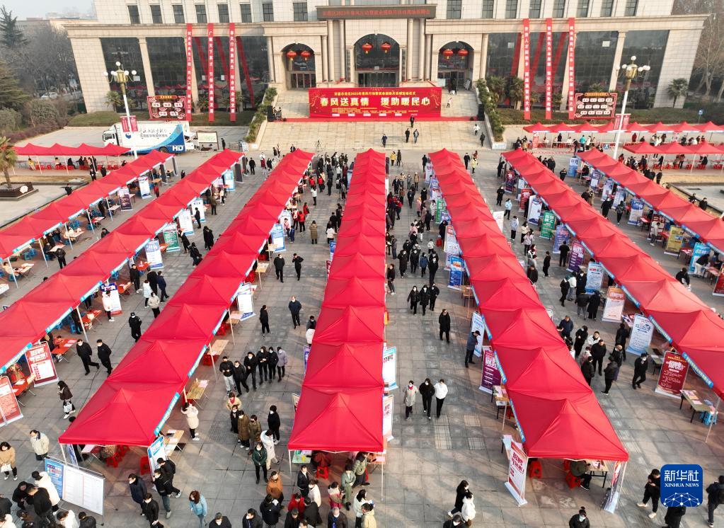 這是2月5日拍攝的河南省濟源市“春風行動”暨就業援助月大型招聘會現場(無人機照片)。
