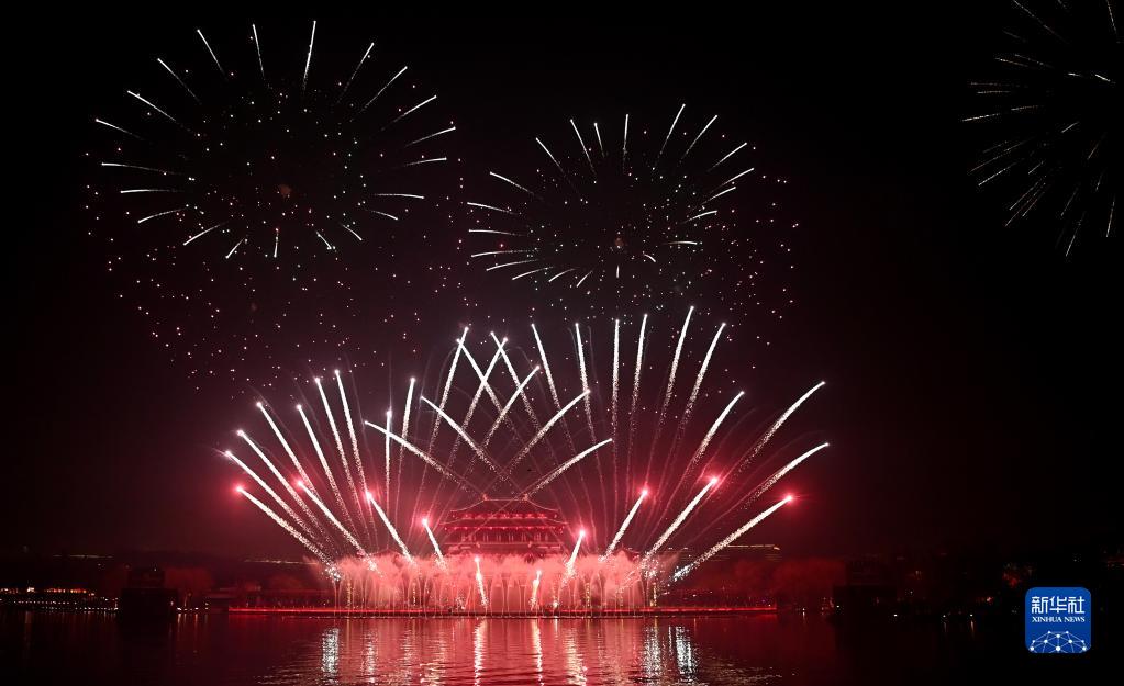 2月5日晚,2023西安曲江上元煙花晚會在大唐芙蓉園舉行。晚會上燈在水里游、人在船中舞、焰火漫天空,西安市勞模及先進工作者、公安和消防及醫護人員等社會各界人士代表千余人和3000名市民代表相聚觀演。