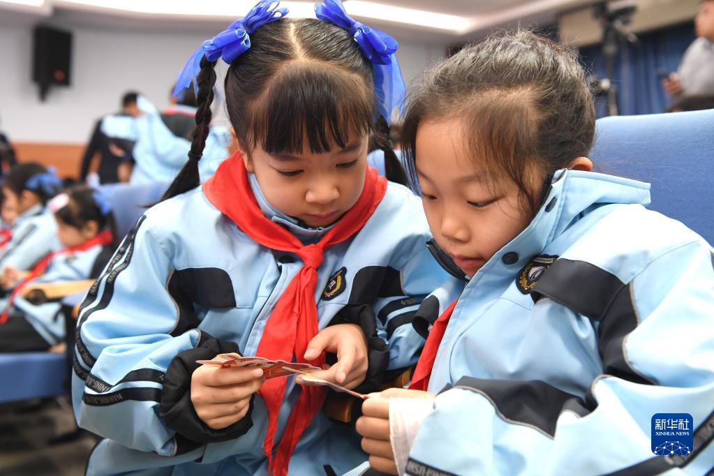 2月6日,兩名學(xué)生在廣西南寧市濱湖路小學(xué)教育集團(tuán)濱湖校區(qū)交流夢想福袋內(nèi)容。