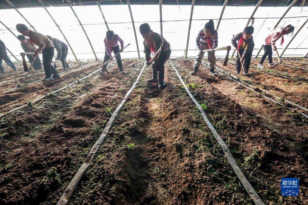 2月6日,河北省遷西縣興城鎮釣水院小學的學生在勞動基地參加勞動。