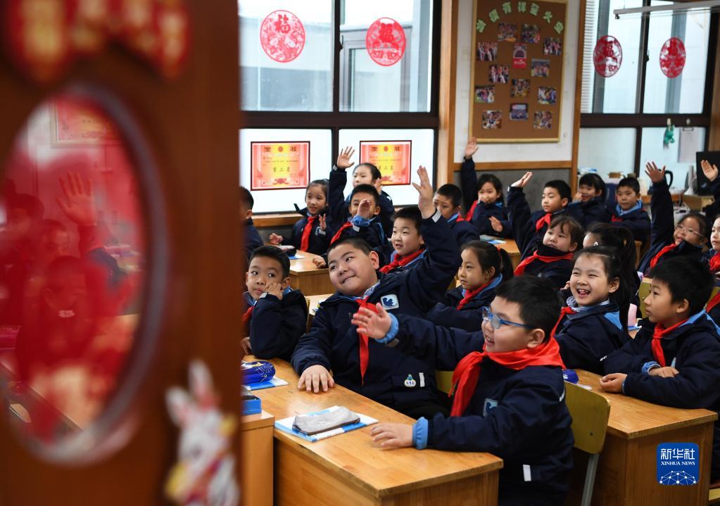 2月6日,西安市新城區后宰門小學的學生在“開學第一課”上踴躍發言。