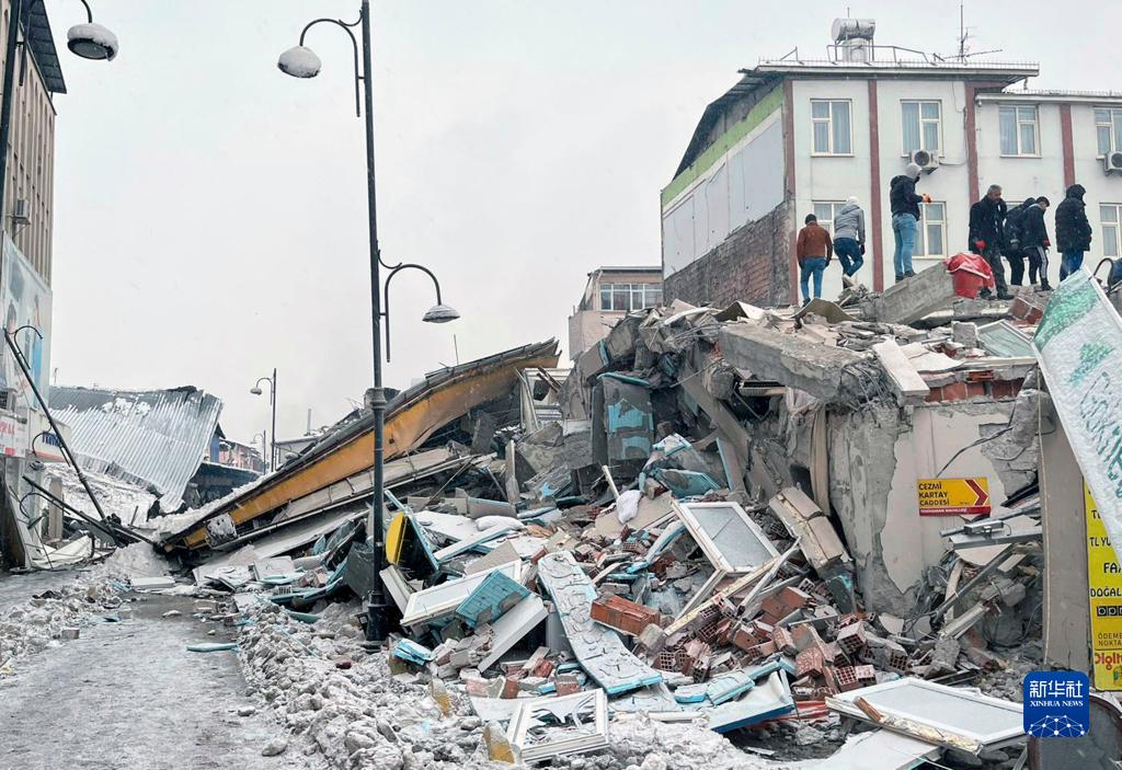 2月6日,人們聚集在土耳其馬拉蒂亞一處倒塌的建筑附近。