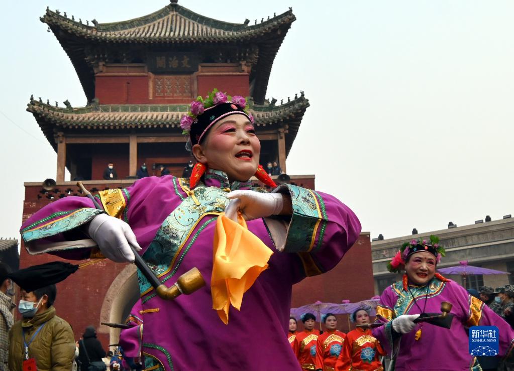 當日是農歷正月十六,在河南省浚縣舉行的正月古廟會上,幾十支社火團隊輪番表演,踩高蹺、扭秧歌、耍獅子,鑼鼓喧天,熱鬧非凡,形成一道富有特色的中原文化景觀。河南省浚縣的正月古廟會已有1600多年歷史,有“華北第一廟會”之稱,被譽為民俗文化的“活化石”,是中國民間文化保護工程項目、國家級非物質文化遺產。