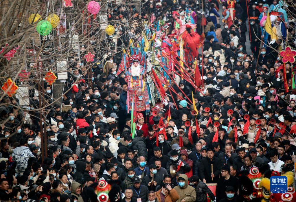 當日是農歷正月十六,在河南省浚縣舉行的正月古廟會上,幾十支社火團隊輪番表演,踩高蹺、扭秧歌、耍獅子,鑼鼓喧天,熱鬧非凡,形成一道富有特色的中原文化景觀。河南省浚縣的正月古廟會已有1600多年歷史,有“華北第一廟會”之稱,被譽為民俗文化的“活化石”,是中國民間文化保護工程項目、國家級非物質文化遺產。