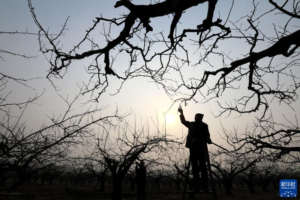 2月6日,石家莊市趙縣精園梨果專業(yè)合作社果農(nóng)在梨園給梨樹修剪枝條。