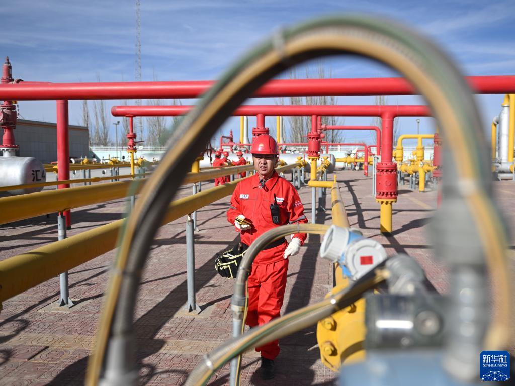 2月6日,中國石油天然氣集團公司青海油田公司管道處格爾木配氣總站輸氣工在巡檢管道。