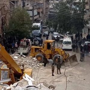 2月6日,人們?cè)跀⒗麃啺⒗疹H省一處倒塌的建筑現(xiàn)場(chǎng)進(jìn)行救援。
