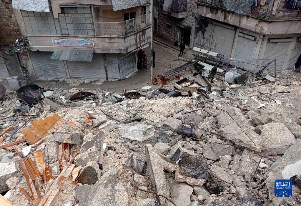 這是2月6日在敘利亞阿勒頗省拍攝的倒塌的建筑。
