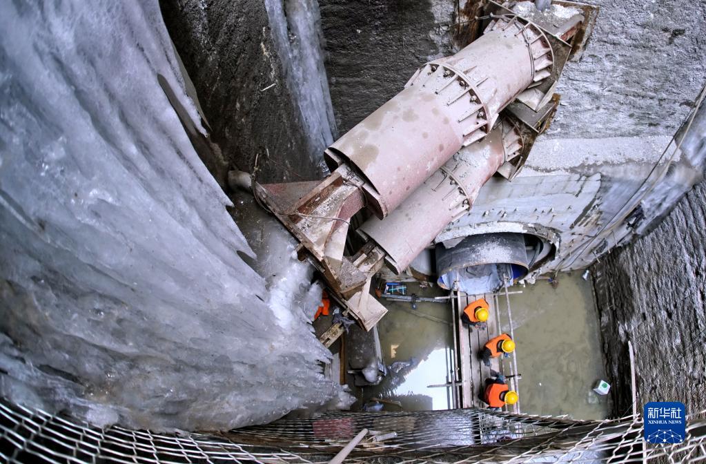2月6日,工人在南水北調(diào)配套工程北京大興支線機場連接線的地下工地施工。