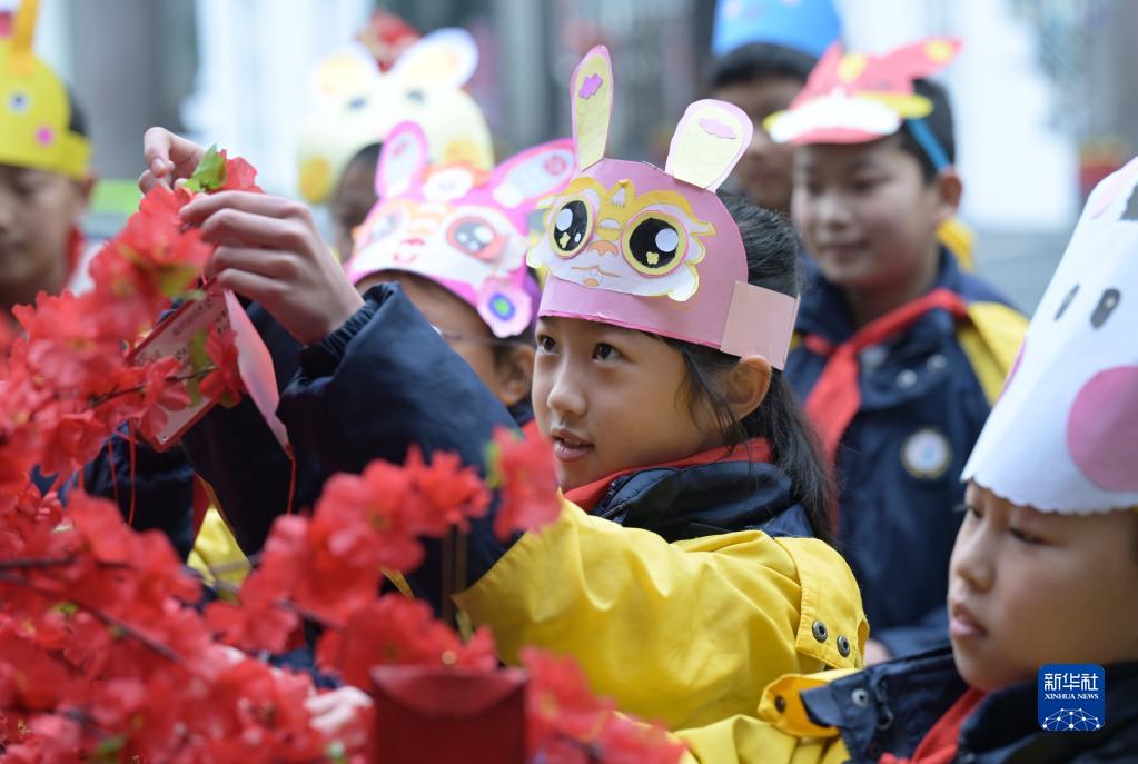 2月6日,合肥市方橋小學學生將寫下的新學期心愿懸掛在校園里。