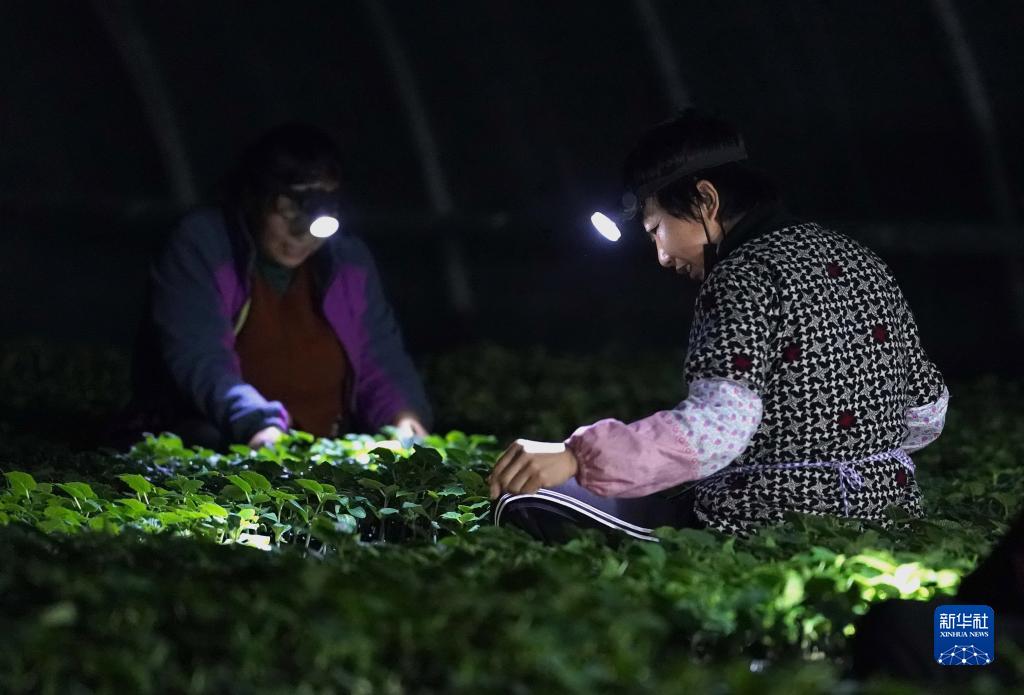 初春時節,河北唐山灤州市的農民開始播種、嫁接果蔬秧苗,田間地頭一派繁忙。