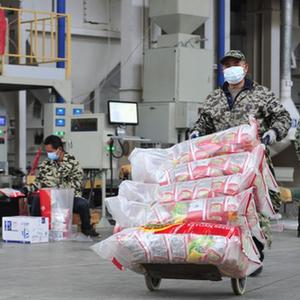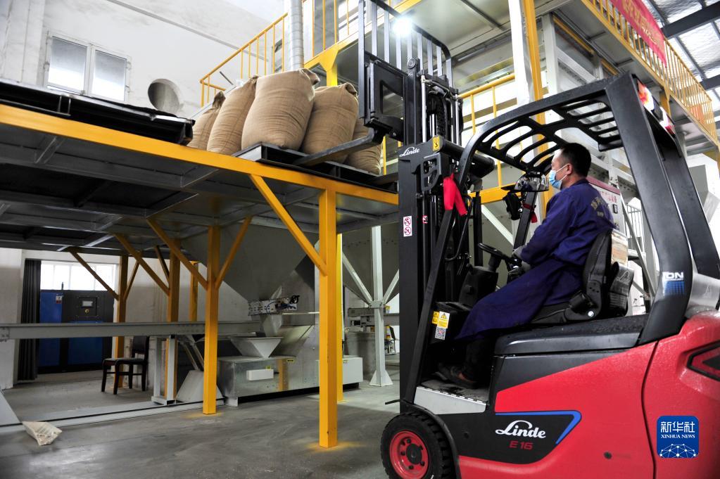 2月6日,在江西省南昌縣一家種業公司,工人轉運種子原料。