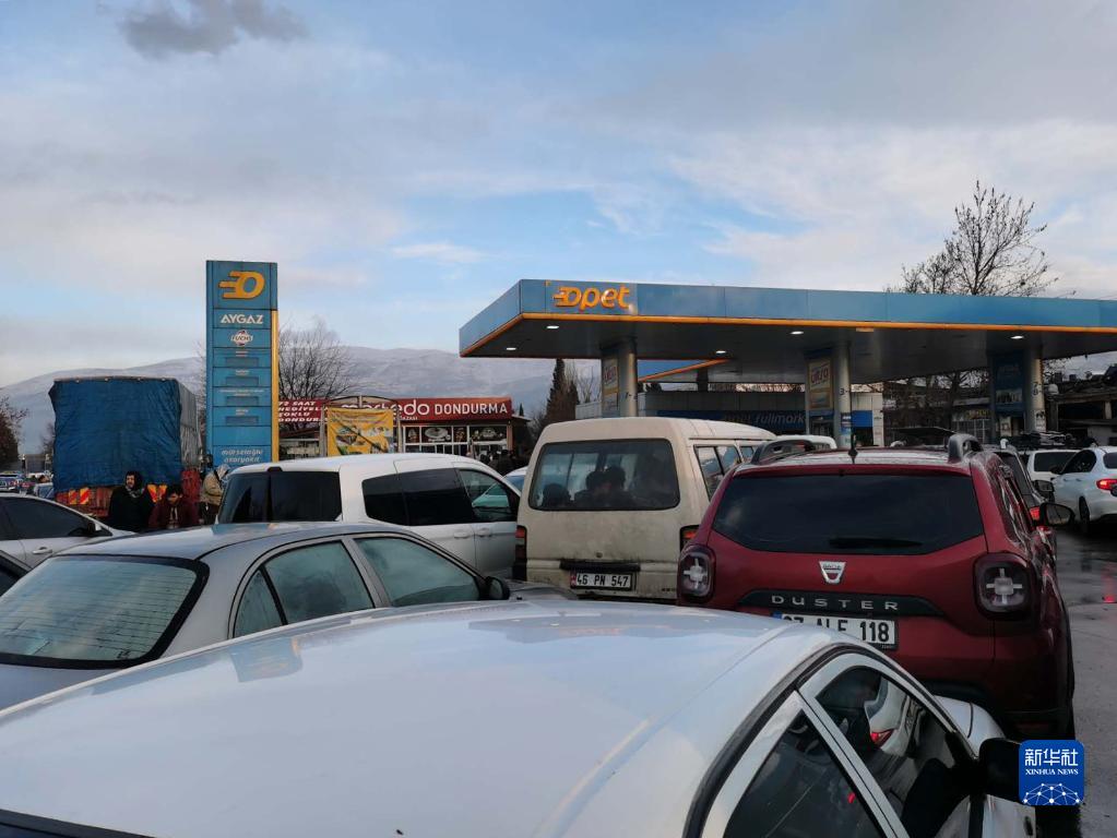 2月7日,人們在土耳其卡赫拉曼馬拉什排隊加油。目前卡赫拉曼馬拉什大部分加油站都已關閉(手機照片)。