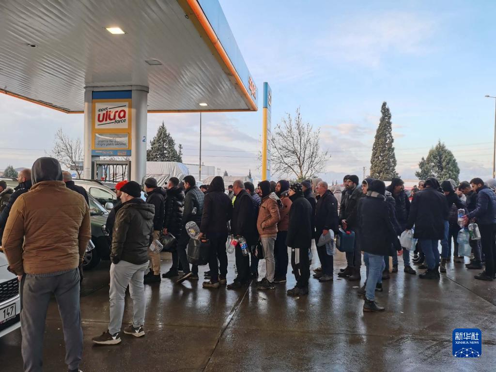 2月7日,人們在土耳其卡赫拉曼馬拉什排隊裝油。目前卡赫拉曼馬拉什大部分加油站都已關閉(手機照片)。
