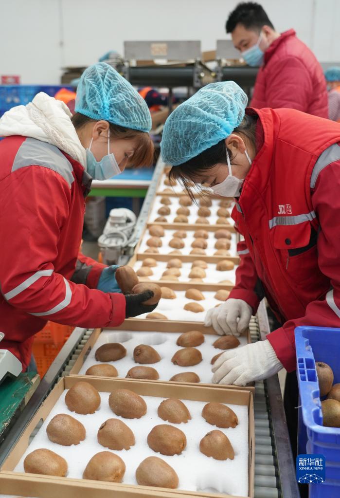 2月6日,在位于武功縣的京東物流陜西智能供應鏈中心,質檢人員逐個檢查獼猴桃。