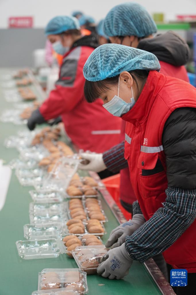 2月6日,在位于武功縣的京東物流陜西智能供應(yīng)鏈中心,工作人員在包裝獼猴桃。