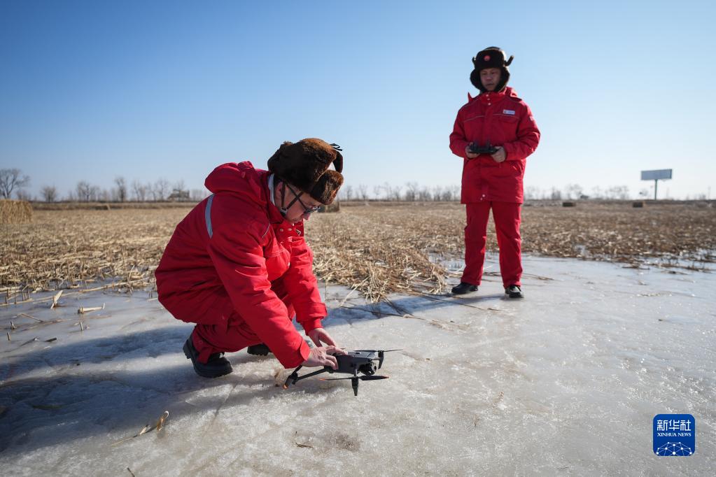 2月6日,中國石油遼河油田興隆臺(tái)輸氣分公司巡線工人準(zhǔn)備使用無人機(jī)進(jìn)行巡線工作。