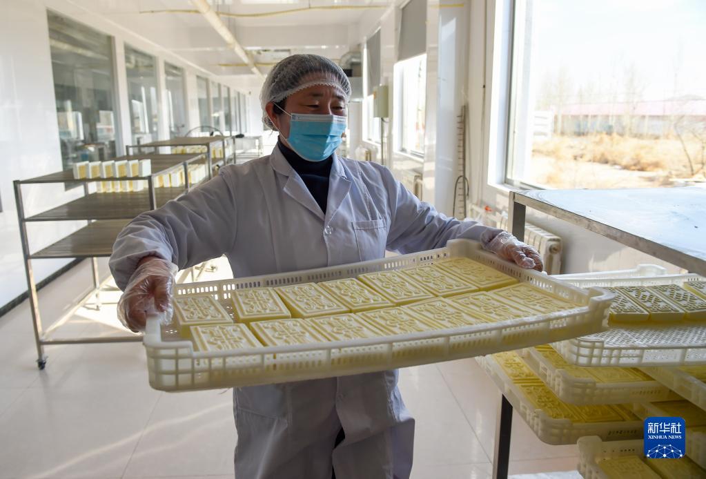 2月6日,工人在內蒙古赤峰市巴林左旗一奶制品有限公司的生產車間內搬運產品。