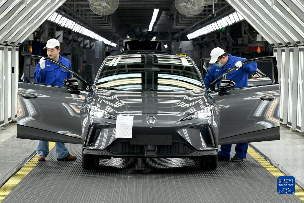 2月7日,在上汽集團乘用車福建寧德基地總裝車間,新車有序下線。