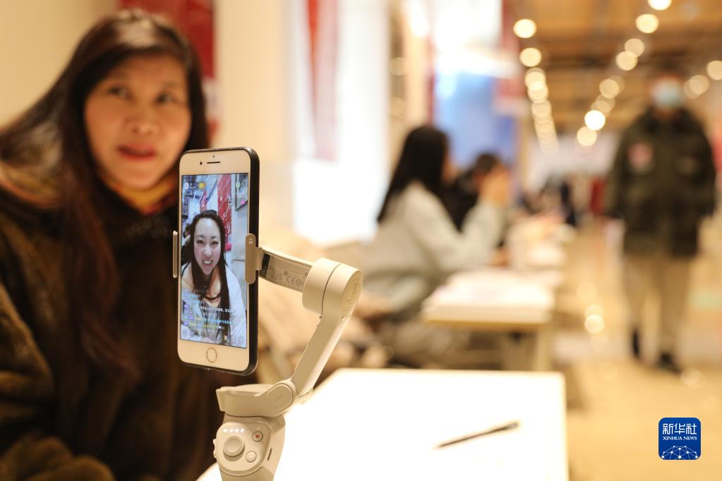 2月7日,在招聘會現場,企業招聘人員進行網上崗位推薦。