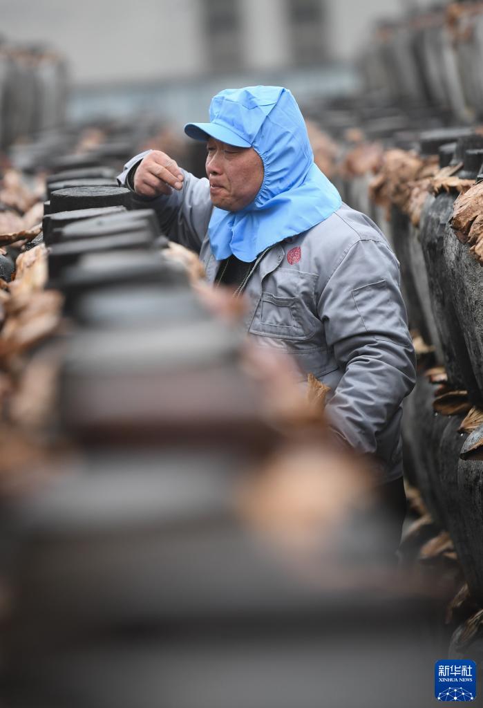 2月7日,在位于紹興市上虞區的女兒紅酒廠,釀酒師王林祥用傳統方式品嘗冬釀黃酒的味道,以確定發酵程度。新華社記者 翁忻旸 攝