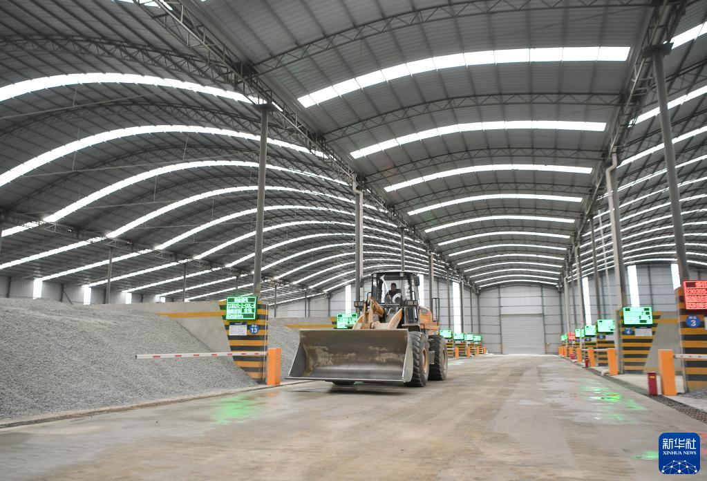 2月6日,中鐵二十局工人在位于陜西省商洛市的西十高鐵一號拌和站運輸建筑材料。