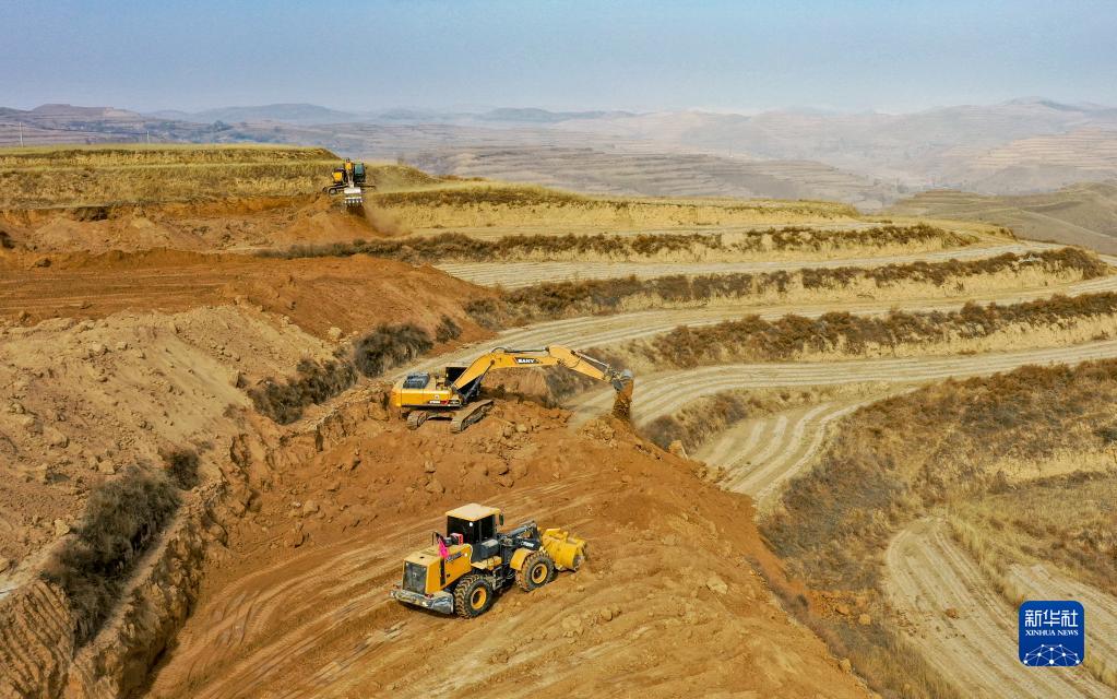 早春時節,多臺大型機械設備在寧夏固原市西吉縣的梯田上為建設高標準農田忙碌作業。今年寧夏全區計劃新建和改造高標準農田93.7萬畝,重點向西海固地區傾斜,其中西吉縣今年計劃建設高標準農田25萬畝。