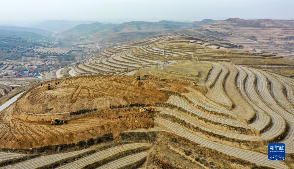 早春時(shí)節(jié),多臺(tái)大型機(jī)械設(shè)備在寧夏固原市西吉縣的梯田上為建設(shè)高標(biāo)準(zhǔn)農(nóng)田忙碌作業(yè)。今年寧夏全區(qū)計(jì)劃新建和改造高標(biāo)準(zhǔn)農(nóng)田93.7萬畝,重點(diǎn)向西海固地區(qū)傾斜,其中西吉縣今年計(jì)劃建設(shè)高標(biāo)準(zhǔn)農(nóng)田25萬畝。