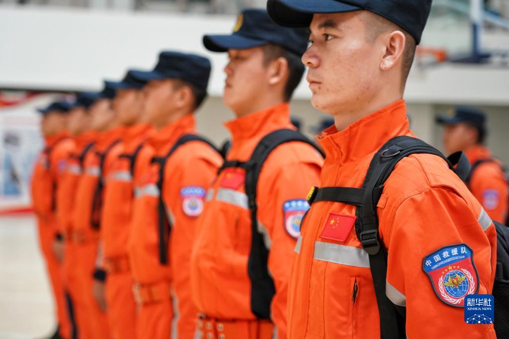 2月7日,中國救援隊隊員在北京大興消防訓練基地準備出發。
