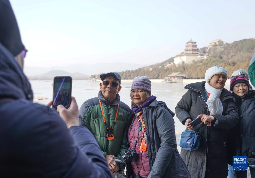 2月7日,香港“銀發(fā)族”們在北京頤和園拍照留念。