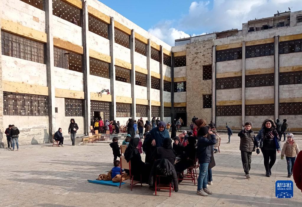 2月7日,受地震影響的人們在敘利亞阿勒頗省的一處安置點休息。