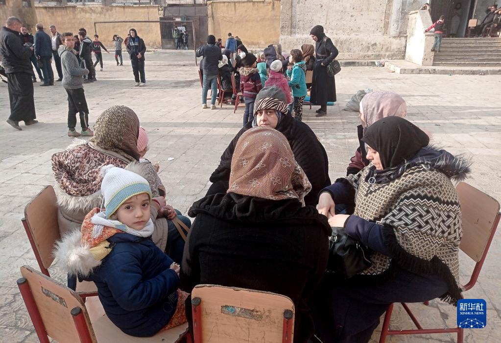 2月7日,受地震影響的人們在敘利亞阿勒頗省的一處安置點休息。