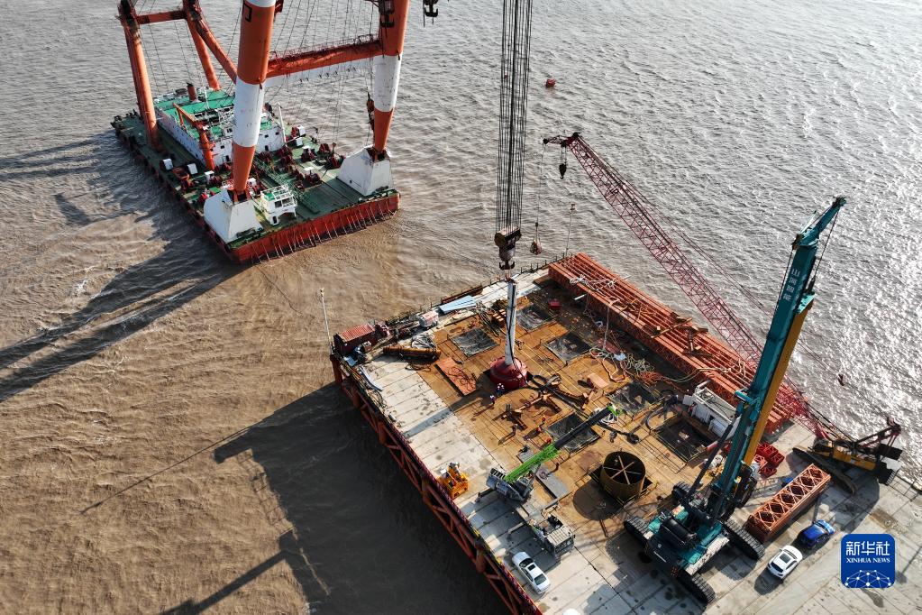 2月7日拍攝的甬舟鐵路西堠門大橋6號墩施工現(xiàn)場(無人機(jī)照片)。西堠門大橋由鐵四院和中鐵大橋院聯(lián)合設(shè)計(jì),其主跨達(dá)1488米。