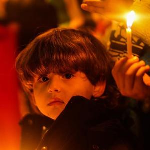 2月7日,在加沙地帶汗尤尼斯,一名兒童手拿蠟燭悼念地震遇難者。