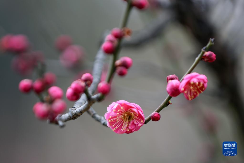 2月7日在江蘇揚州蜀岡西峰拍攝的梅花。