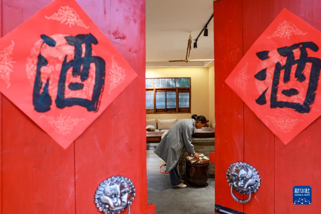 團結村村民在自家經營的煙酒店內擺放貨物(2月2日攝)。