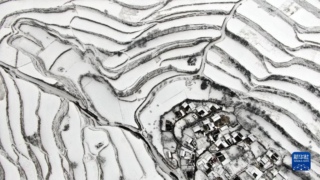2月8日在隴南市宕昌縣哈達鋪鎮拉路梁梯田拍攝的雪景。