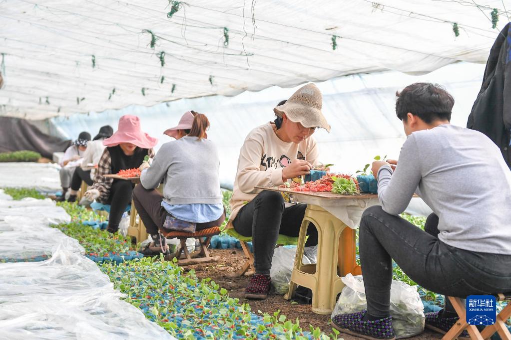 立春過后,氣溫回暖。在吉林省四平市梨樹縣果蔬大棚里,農民們搶抓農時,一派繁忙景象。近年來,梨樹縣積極挖掘“黑土地”資源,大力發展棚膜經濟,走出一條讓農民四季皆可創收的致富路。2022年,全縣各類棚膜面積超4萬畝。