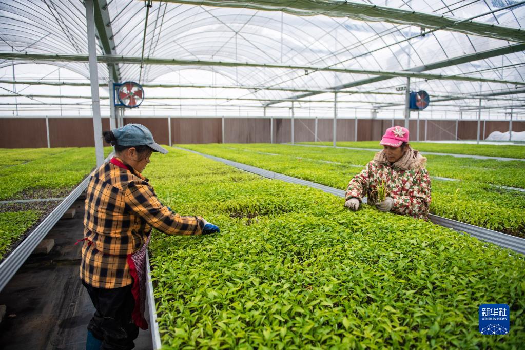 2月8日,在鼎城區國家現代農業產業園一處蔬菜育苗基地,工作人員在清理蔬菜育苗盤中的雜草。